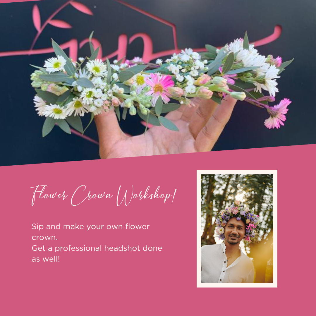This is a sip and create - we provide all the florals and a photographer for you to get a professional headshot done with your creation.