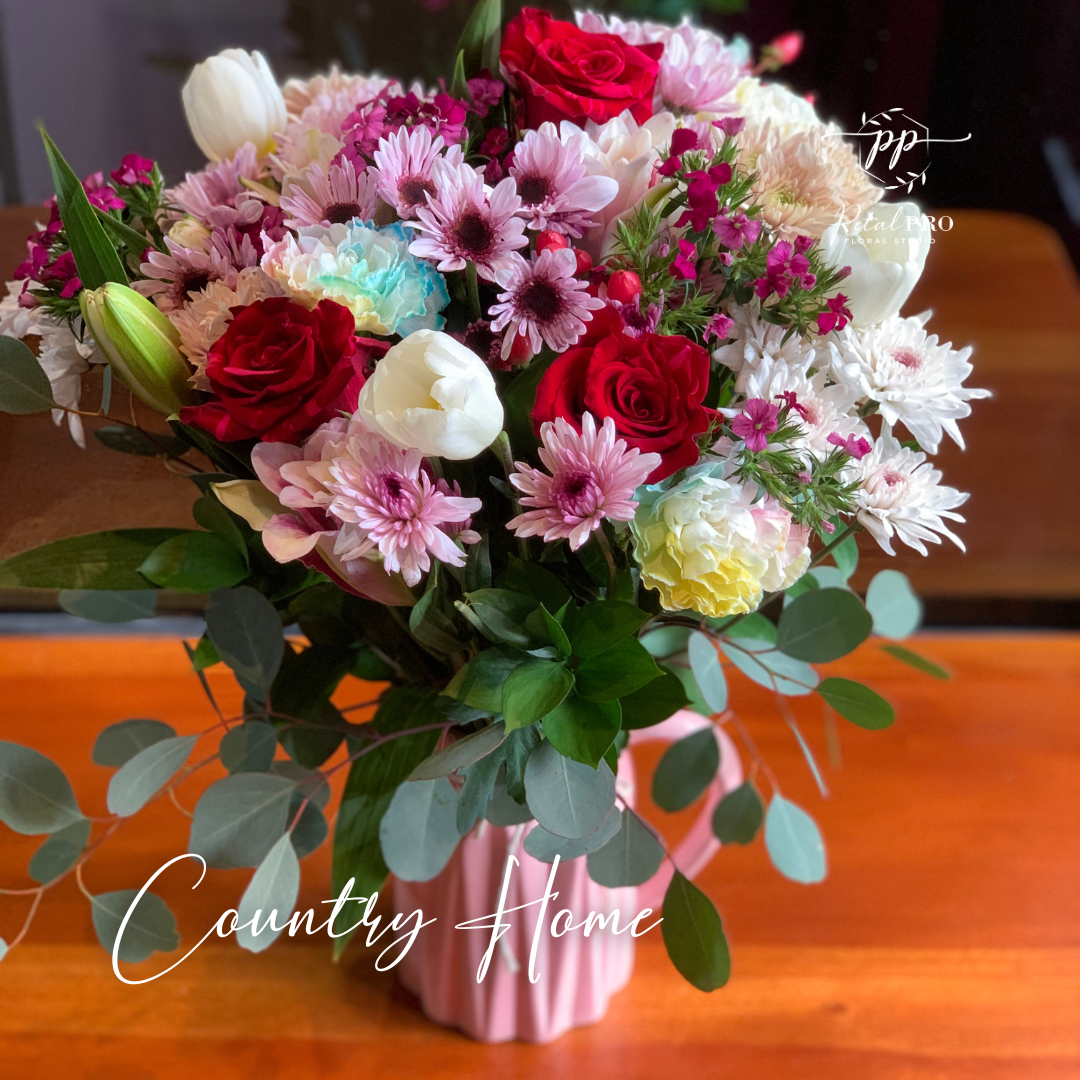 This stole my heart. An array of beautiful mixed blooms - in this rustic mug ceramic vase.
